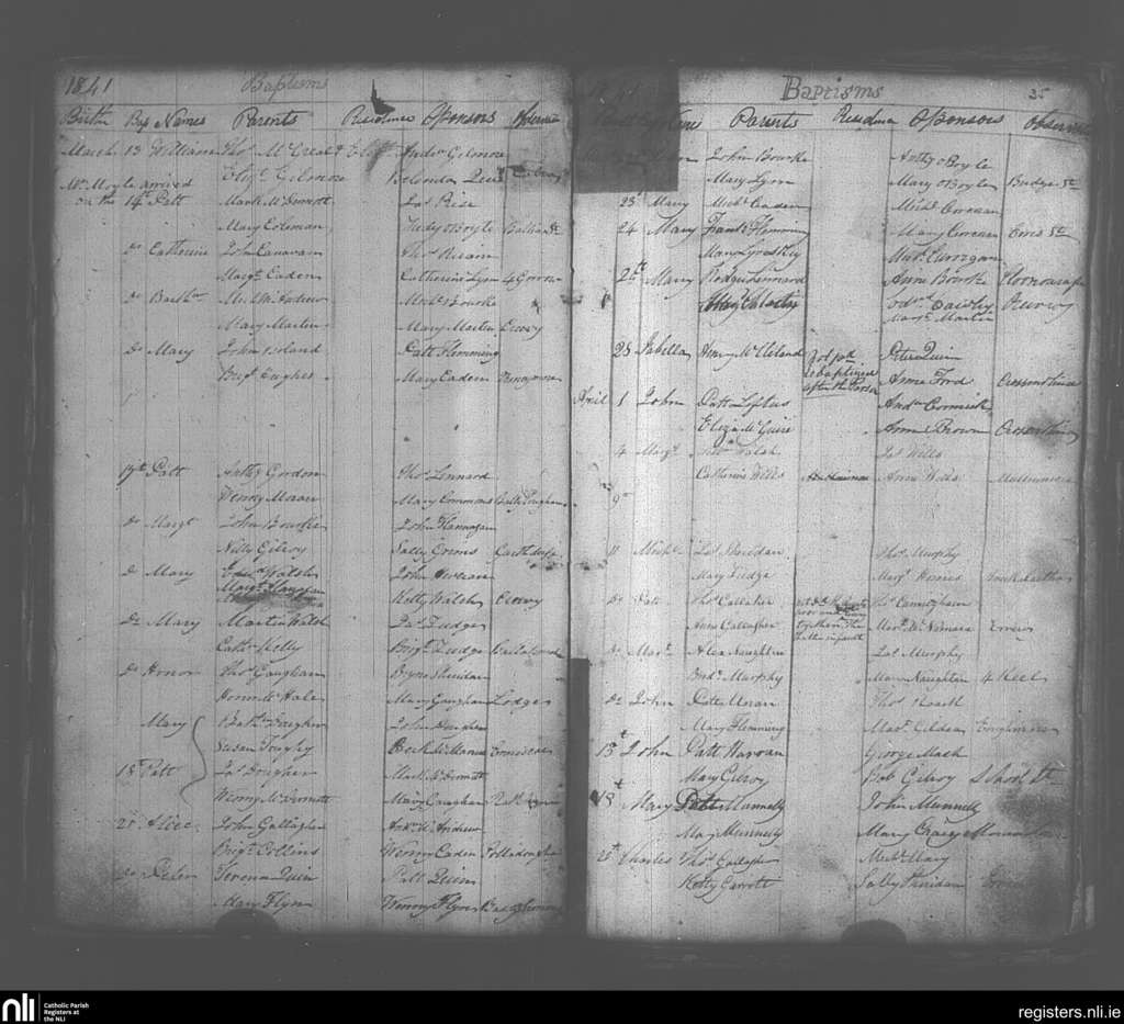 Crossmolina; County of Mayo; Diocese of Killala. Baptisms, Mar. 1841 to Apr. 1841