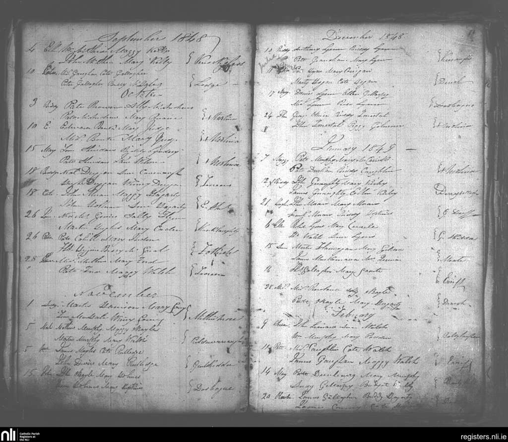Crossmolina; County of Mayo; Diocese of Killala. Baptisms, Sep. 1848 to Feb. 1849