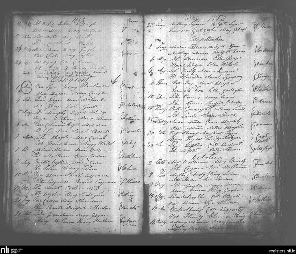 Crossmolina; County of Mayo; Diocese of Killala. Baptisms, July 1853 to Oct. 1853