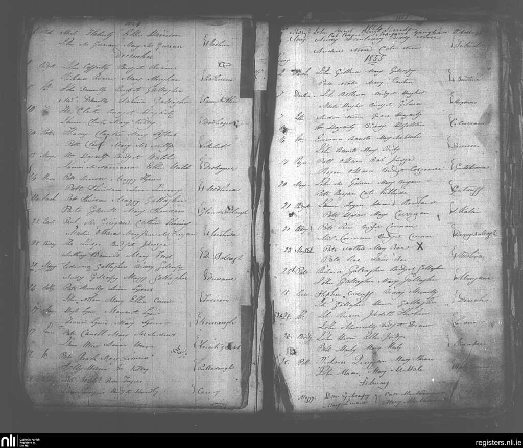 Crossmolina; County of Mayo; Diocese of Killala. Baptisms, Nov. 1854 to Feb. 1855