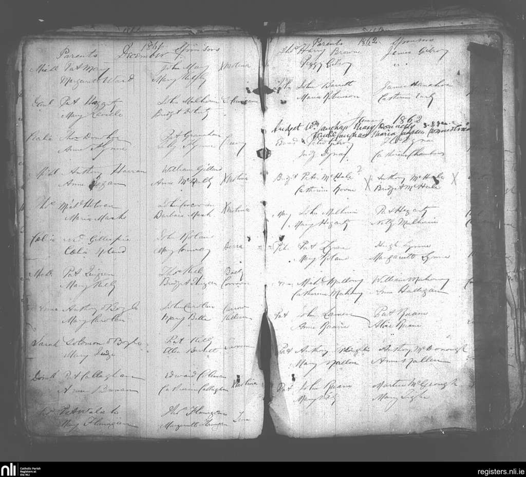 Crossmolina; County of Mayo; Diocese of Killala. Baptisms, Dec. 1861 to Jan. 1862