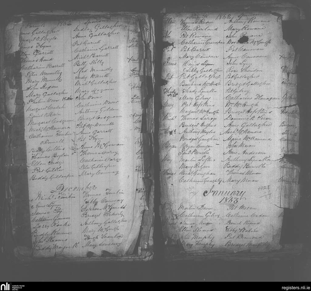 Crossmolina; County of Mayo; Diocese of Killala. Baptisms, Nov. 1862 to Jan. 1863