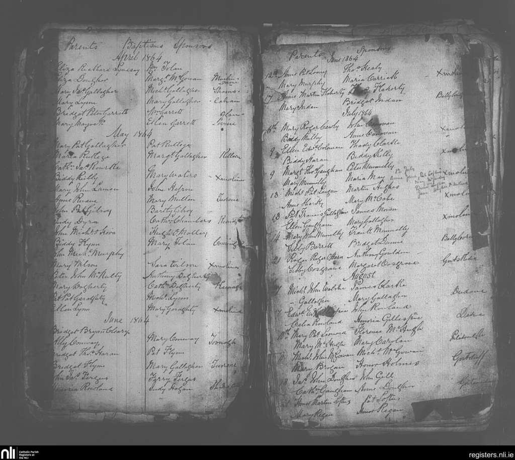 Crossmolina; County of Mayo; Diocese of Killala. Baptisms, Apr. 1864 to Aug. 1864