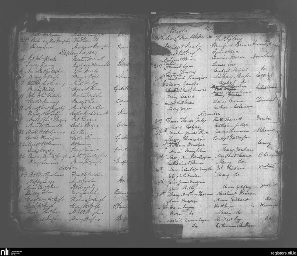 Crossmolina; County of Mayo; Diocese of Killala. Baptisms, Aug. 1864 to Nov. 1864