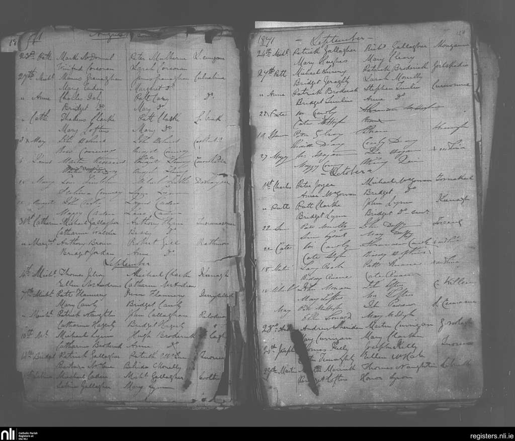 Crossmolina; County of Mayo; Diocese of Killala. Baptisms, Aug. 1871 to Oct. 1871