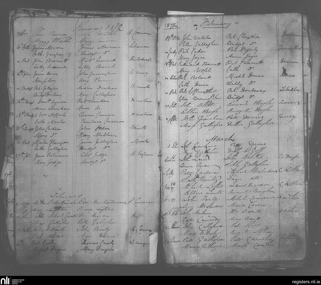 Crossmolina; County of Mayo; Diocese of Killala. Baptisms, Jan. 1872 to Mar. 1872