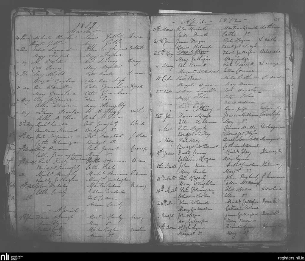 Crossmolina; County of Mayo; Diocese of Killala. Baptisms, Mar. 1872 to May 1872