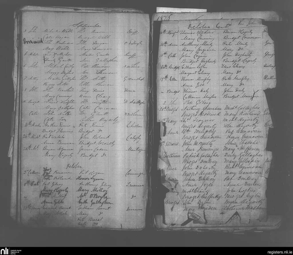 Crossmolina; County of Mayo; Diocese of Killala. Baptisms, Sep. 1875 to Oct. 1875