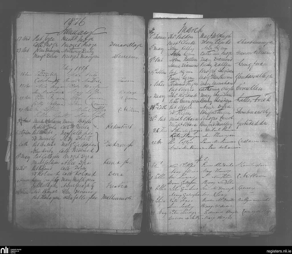 Crossmolina; County of Mayo; Diocese of Killala. Baptisms, Jan. 1876 to Apr. 1876