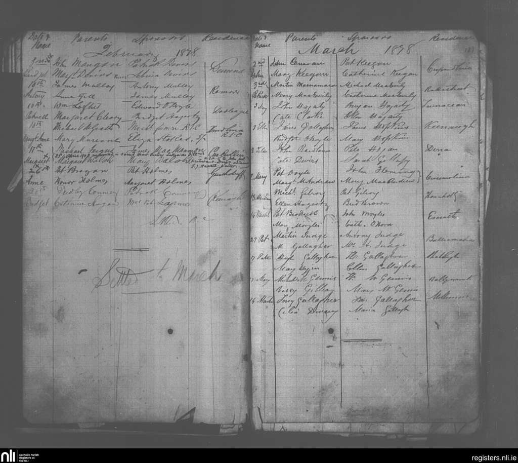 Crossmolina; County of Mayo; Diocese of Killala. Baptisms, Marriages, Feb. 1878 to Apr. 1908