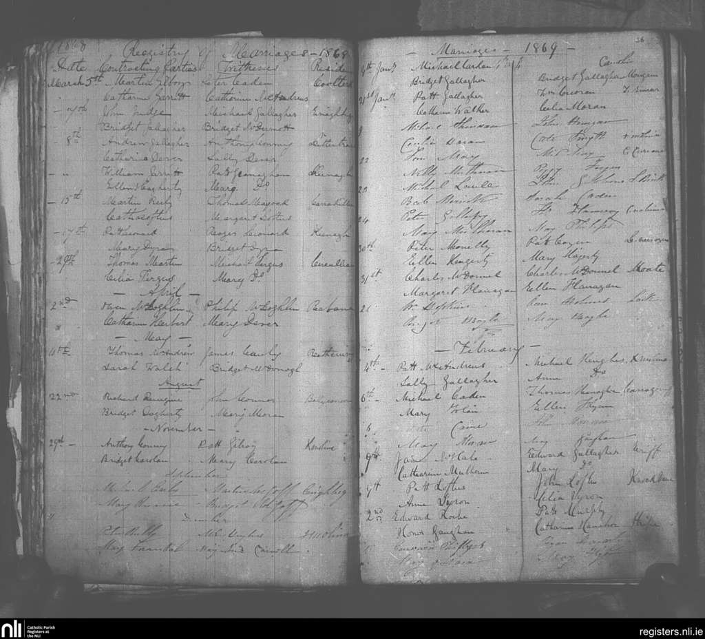 Crossmolina; County of Mayo; Diocese of Killala. Marriages, Mar. 1868 to Feb. 1869