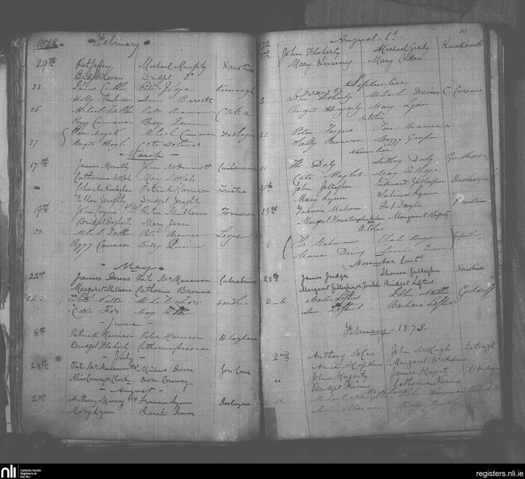 Crossmolina; County of Mayo; Diocese of Killala. Marriages, Feb. 1872 to Feb. 1873