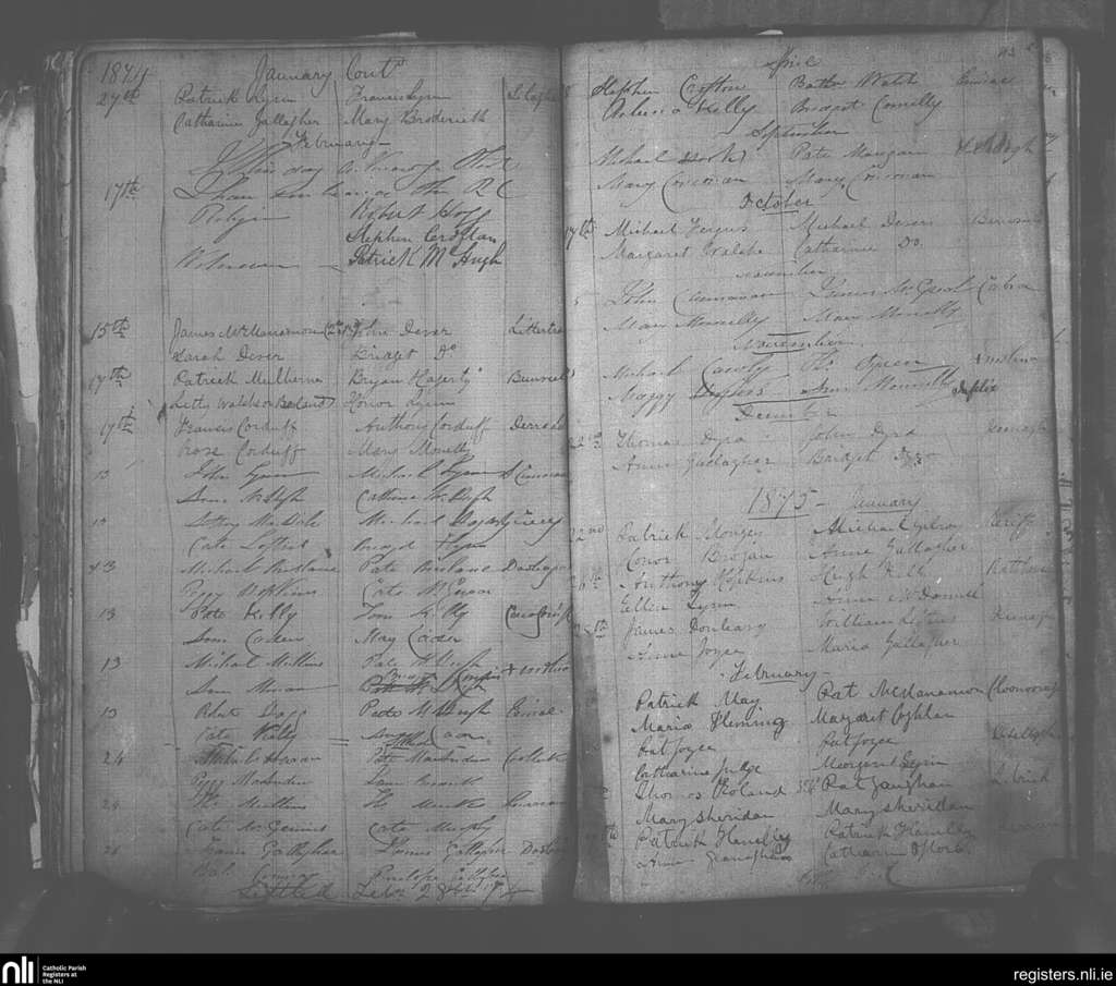 Crossmolina; County of Mayo; Diocese of Killala. Marriages, Jan. 1874 to Feb. 1875