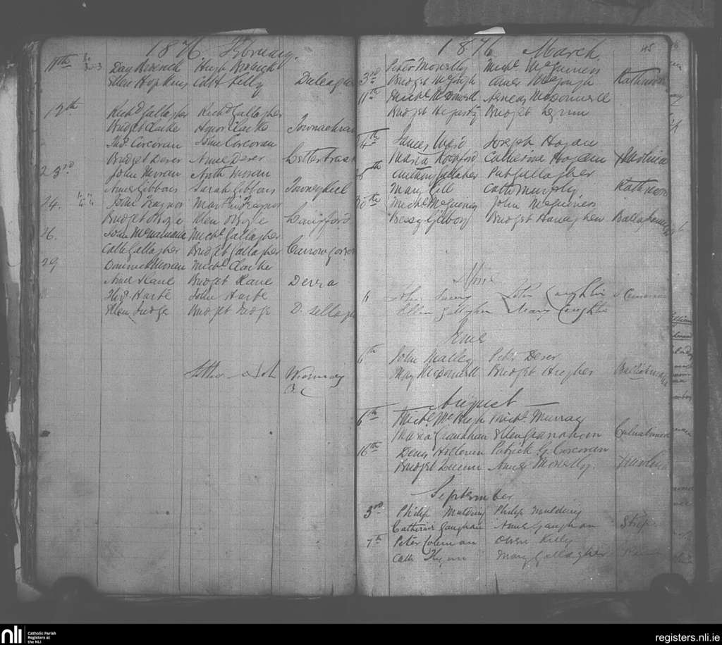 Crossmolina; County of Mayo; Diocese of Killala. Marriages, Feb. 1876 to Sep. 1876