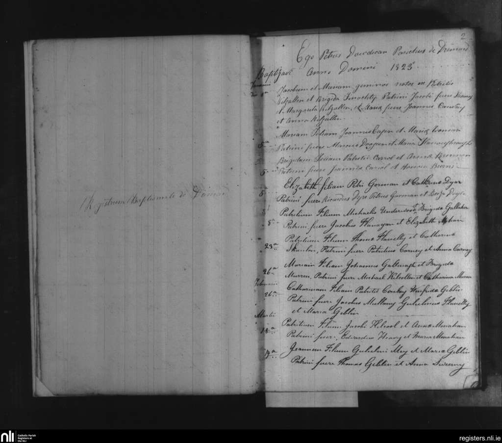 Dromard and Skreen; County of Sligo; Diocese of Killala. Baptisms, Jan. 1823 to Mar. 1823