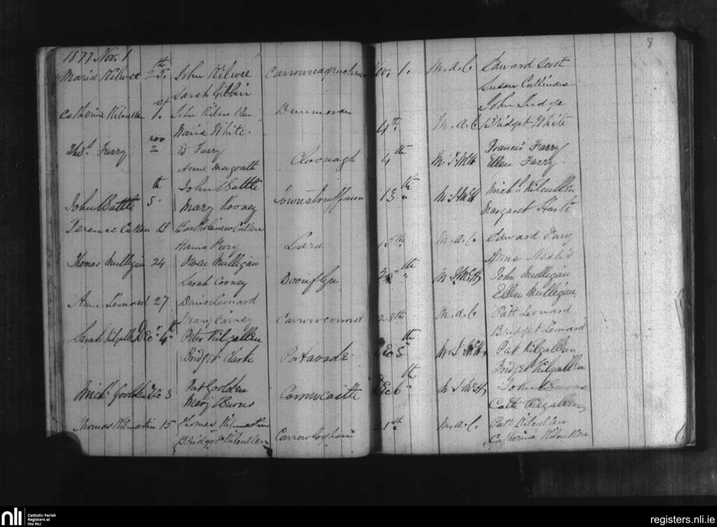 Dromard and Skreen; County of Sligo; Diocese of Killala. Baptisms, Nov. 1877 to Dec. 1877