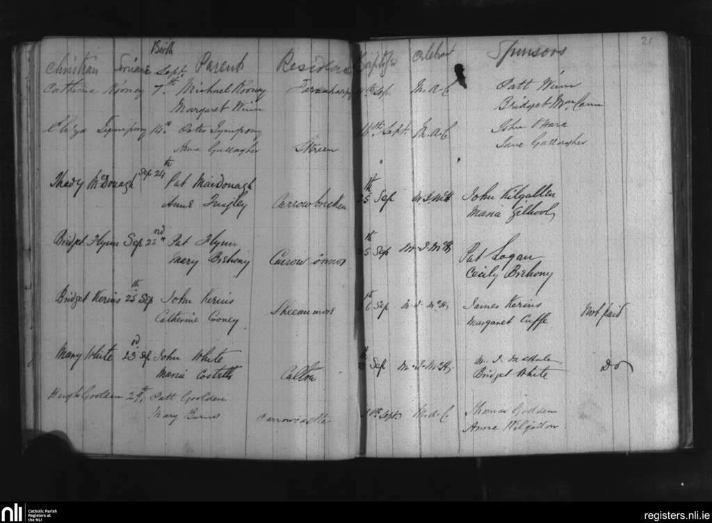 Dromard and Skreen; County of Sligo; Diocese of Killala. Baptisms, Sep. 1879