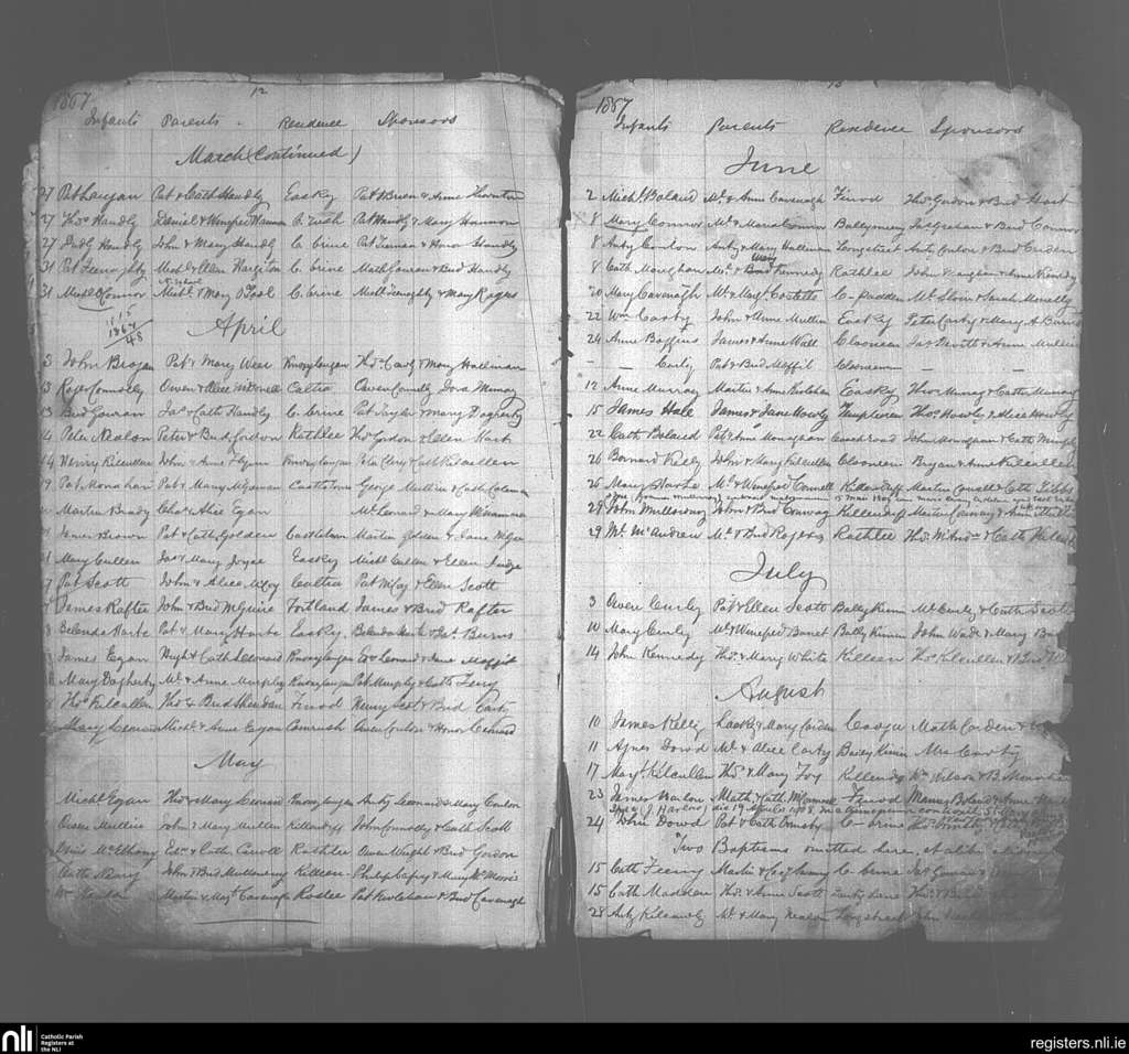 Easkey; County of Sligo; Diocese of Killala. Baptisms, Marriages, Mar. 1867 to May 1909