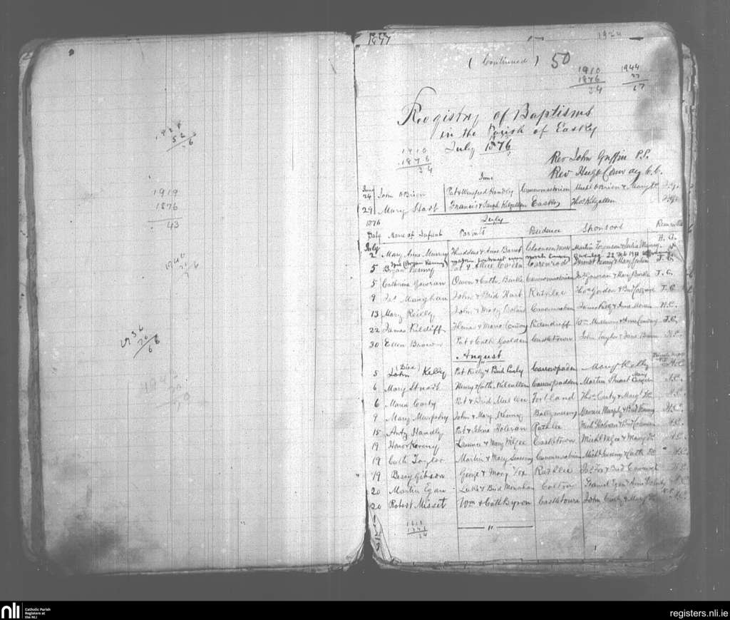 Easkey; County of Sligo; Diocese of Killala. Baptisms, Marriages, June 1876 to Feb. 1911
