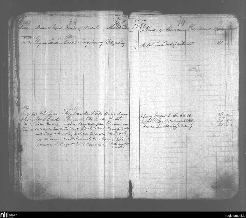 Easkey; County of Sligo; Diocese of Killala. Baptisms, Marriages, June 1880 to Aug. 1909