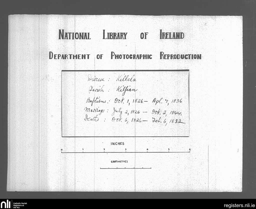 Kilfian; County of Mayo; Diocese of Killala. Baptisms, Marriages, Deaths