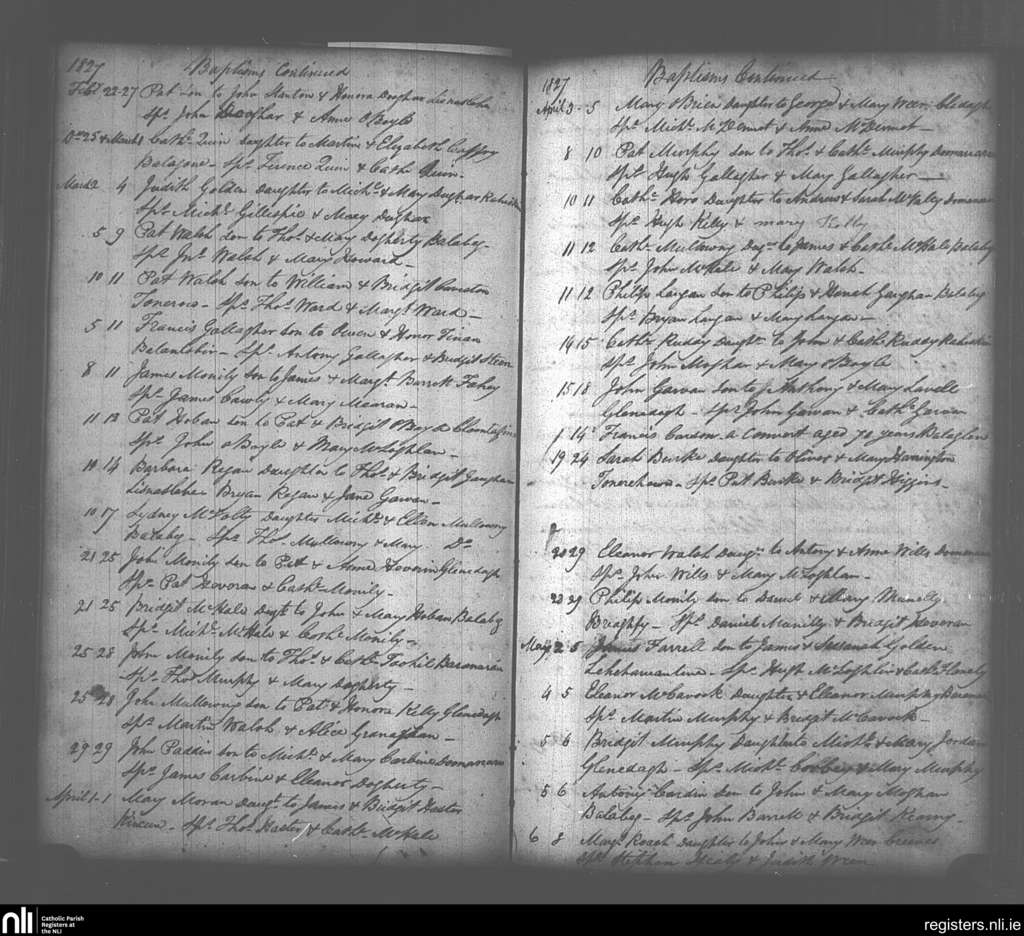 Kilfian; County of Mayo; Diocese of Killala. Baptisms, Feb. 1827 to May 1827