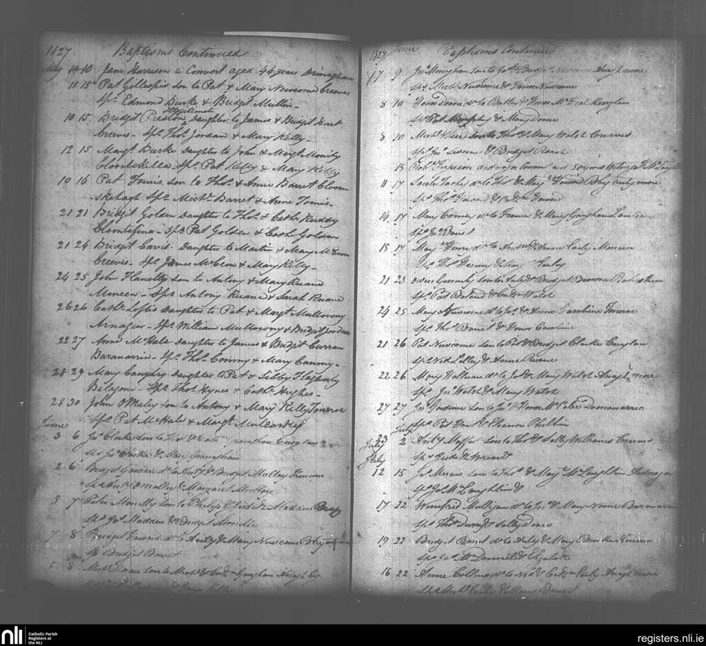 Kilfian; County of Mayo; Diocese of Killala. Baptisms, May 1827 to July 1827