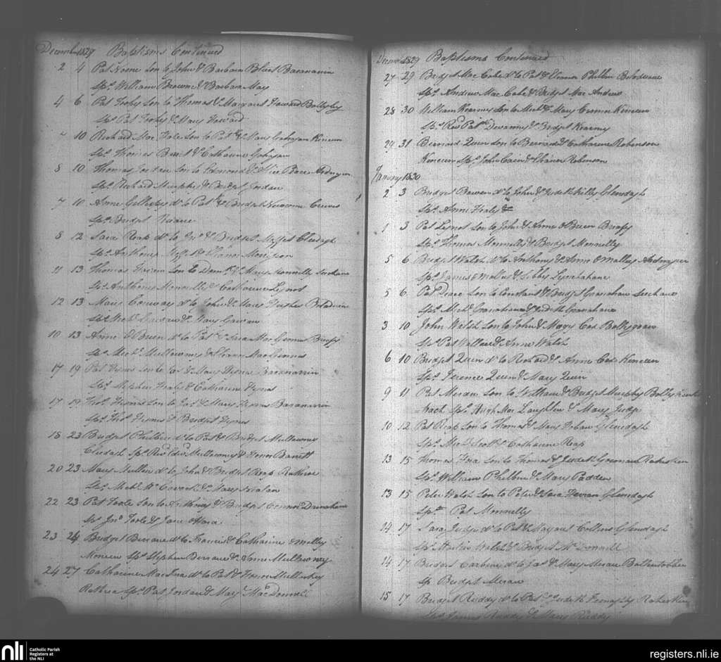 Kilfian; County of Mayo; Diocese of Killala. Baptisms, Dec. 1829 to Jan. 1830