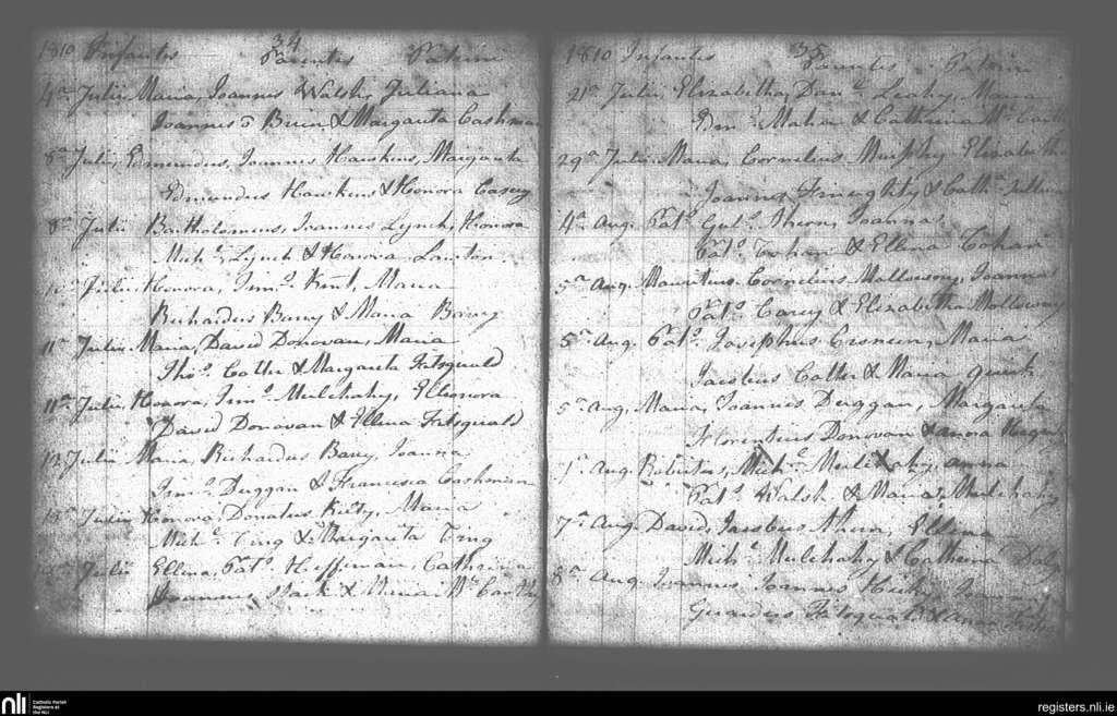 Lisgoold; County of Cork; Diocese of Cloyne. Baptisms, July 1810 to Aug. 1810