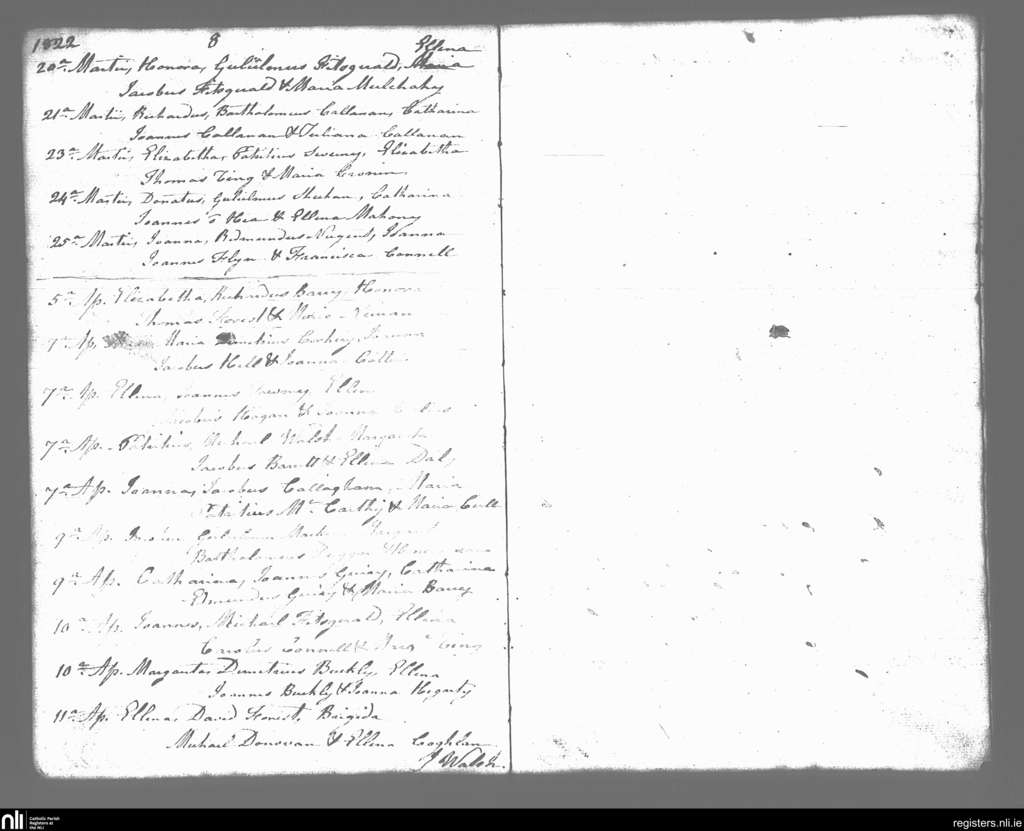 Lisgoold; County of Cork; Diocese of Cloyne. Baptisms, Mar. 1822 to Apr. 1822