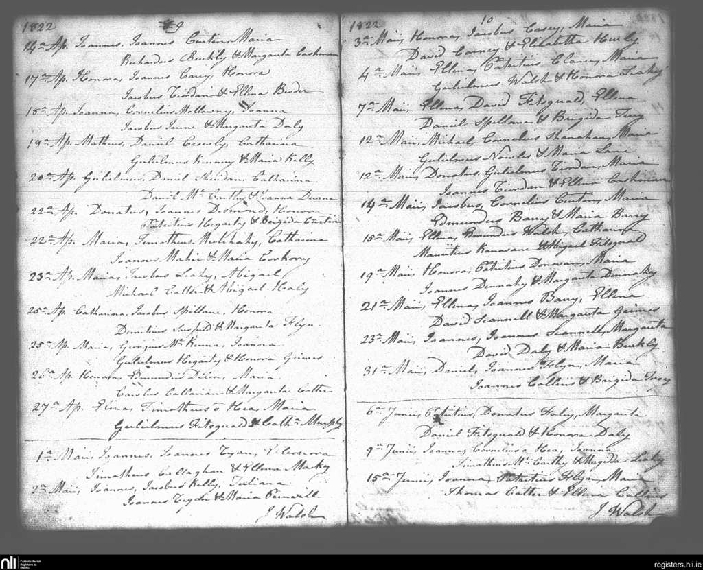 Lisgoold; County of Cork; Diocese of Cloyne. Baptisms, Apr. 1822 to June 1822