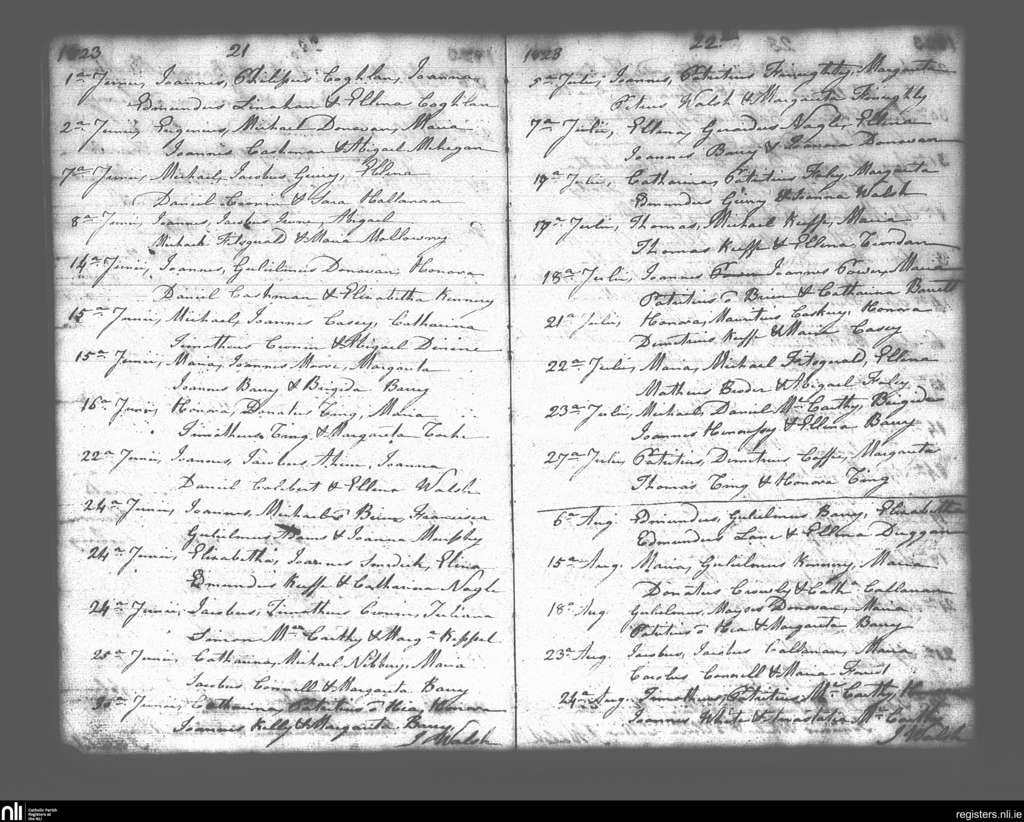 Lisgoold; County of Cork; Diocese of Cloyne. Baptisms, June 1823 to Aug. 1823