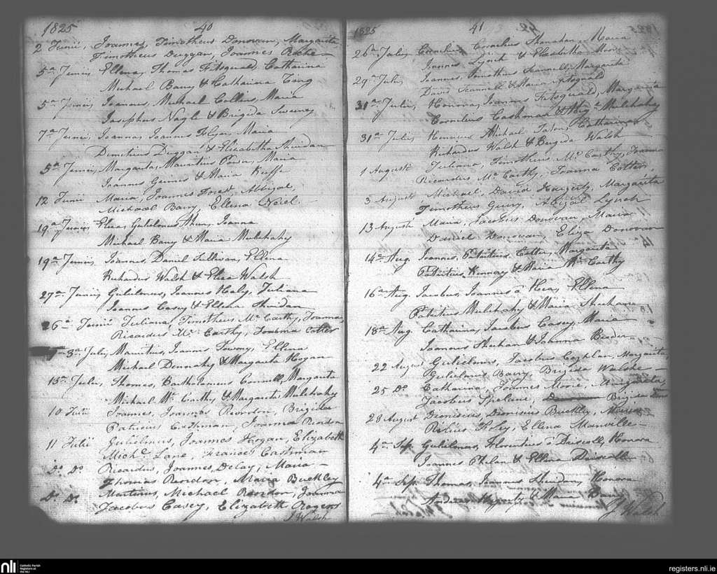 Lisgoold; County of Cork; Diocese of Cloyne. Baptisms, June 1825 to Sep. 1825