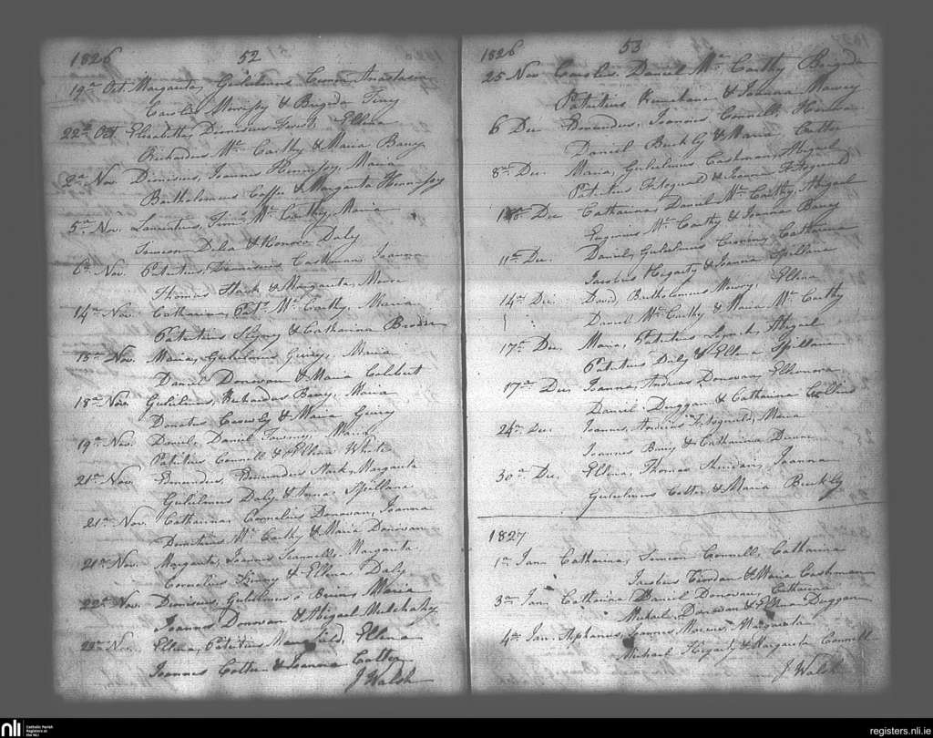 Lisgoold; County of Cork; Diocese of Cloyne. Baptisms, Oct. 1826 to Jan. 1827