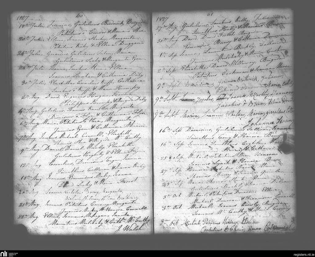 Lisgoold; County of Cork; Diocese of Cloyne. Baptisms, July 1827 to Oct. 1827
