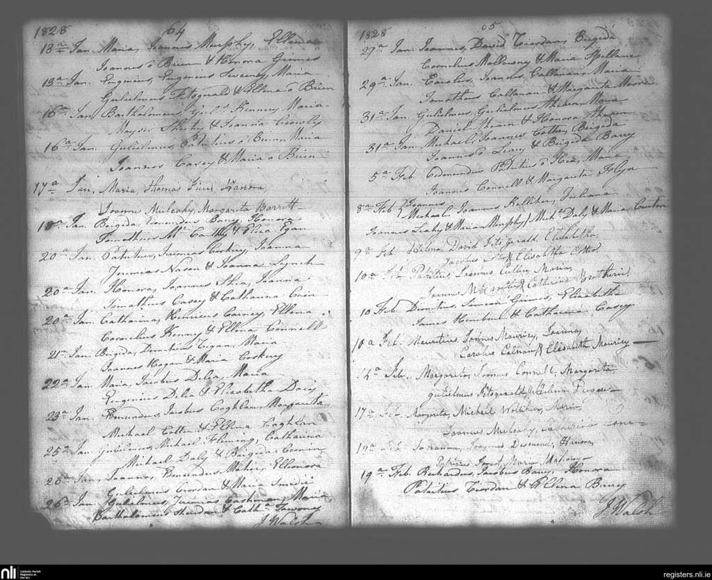 Lisgoold; County of Cork; Diocese of Cloyne. Baptisms, Jan. 1828 to Feb. 1828