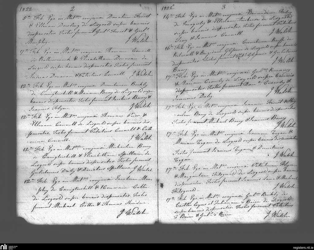 Lisgoold; County of Cork; Diocese of Cloyne. Marriages, Feb. 1822