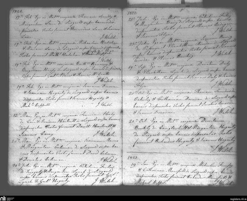 Lisgoold; County of Cork; Diocese of Cloyne. Marriages, Feb. 1822 to Jan. 1823
