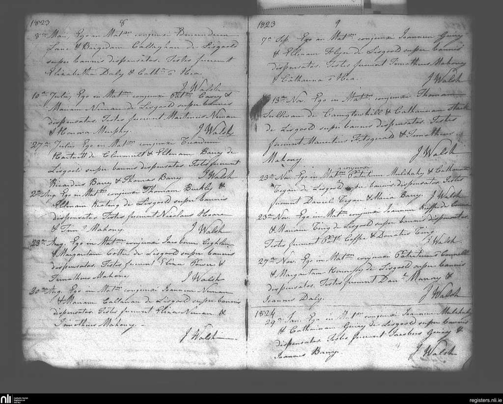 Lisgoold; County of Cork; Diocese of Cloyne. Marriages, May 1823 to Jan. 1824