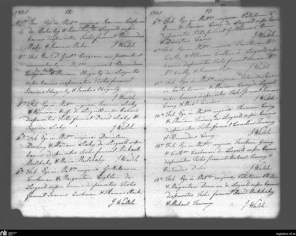 Lisgoold; County of Cork; Diocese of Cloyne. Marriages, Jan. 1825 to Feb. 1825