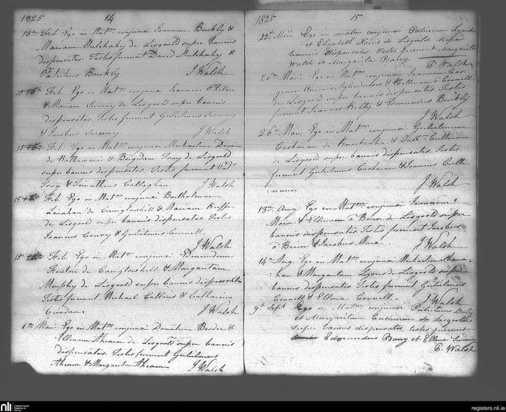 Lisgoold; County of Cork; Diocese of Cloyne. Marriages, Feb. 1825 to Sep. 1825