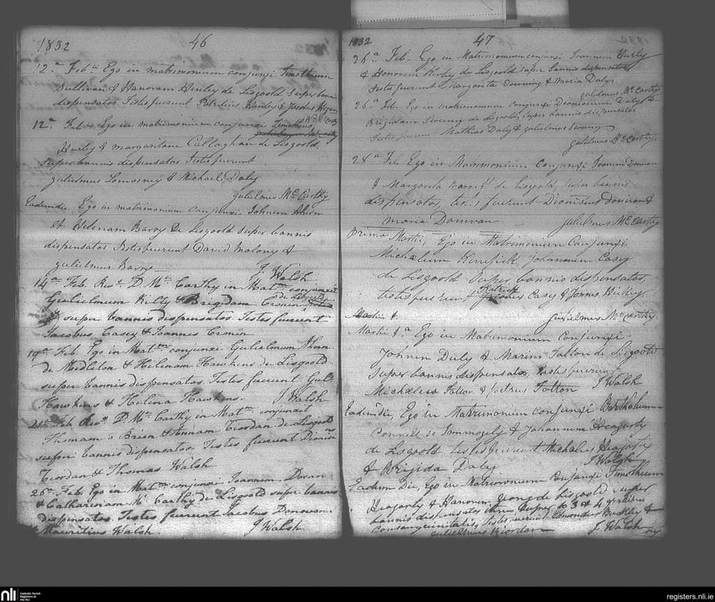 Lisgoold; County of Cork; Diocese of Cloyne. Marriages, Feb. 1832 to Mar. 1832