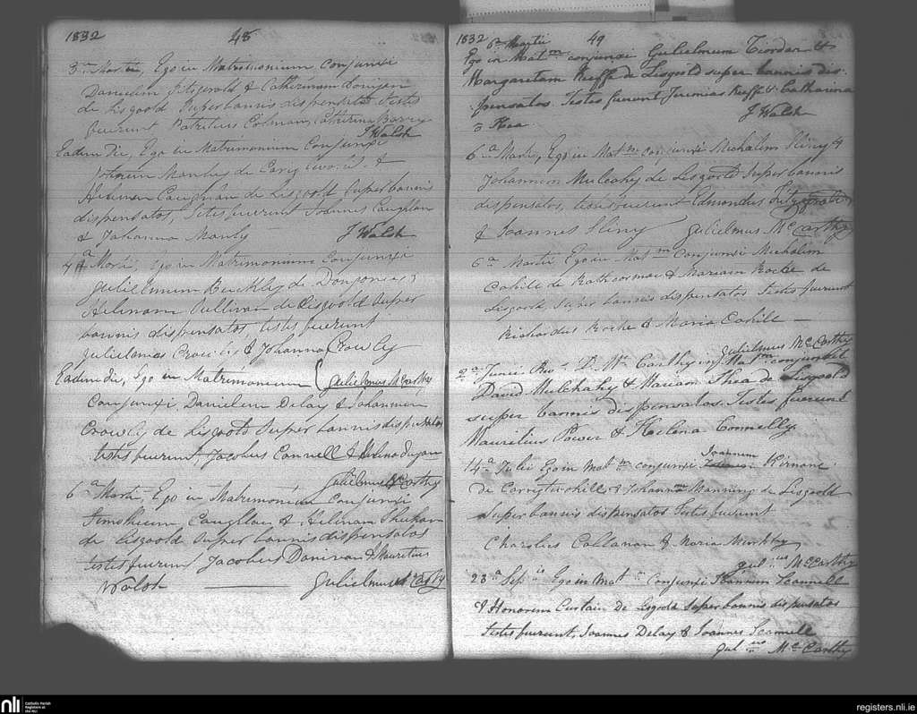 Lisgoold; County of Cork; Diocese of Cloyne. Marriages, Mar. 1832 to Sep. 1832