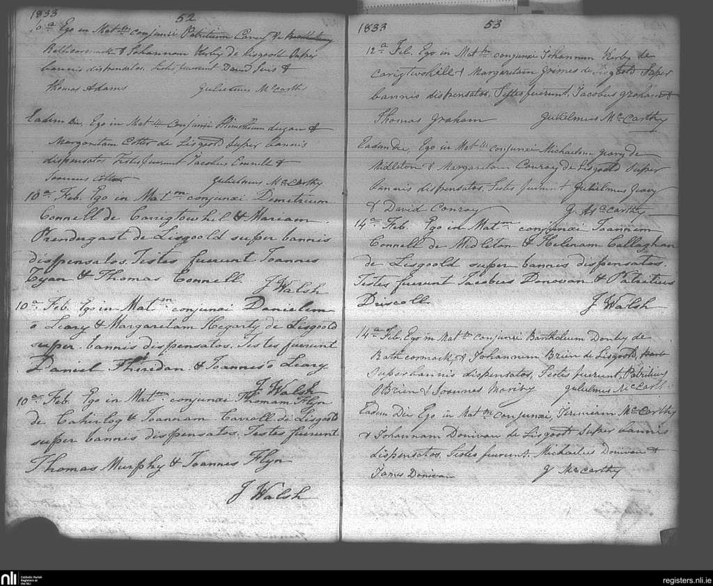 Lisgoold; County of Cork; Diocese of Cloyne. Marriages, Feb. 1833