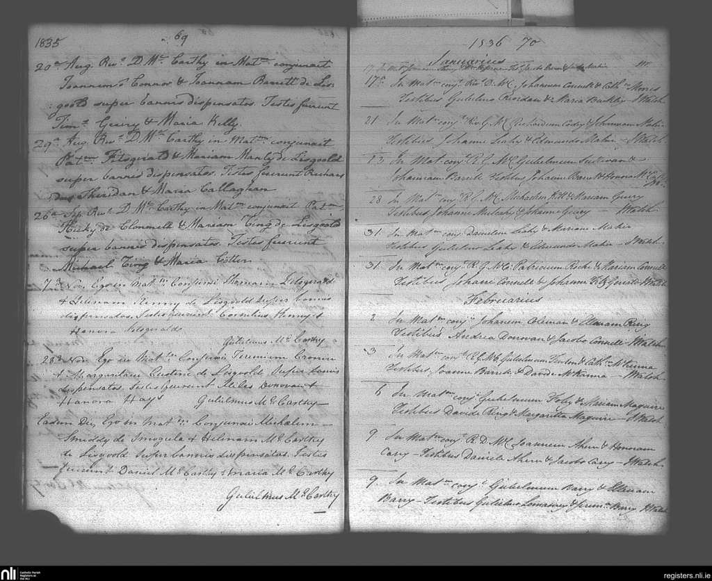 Lisgoold; County of Cork; Diocese of Cloyne. Marriages, Aug. 1835 to Feb. 1836
