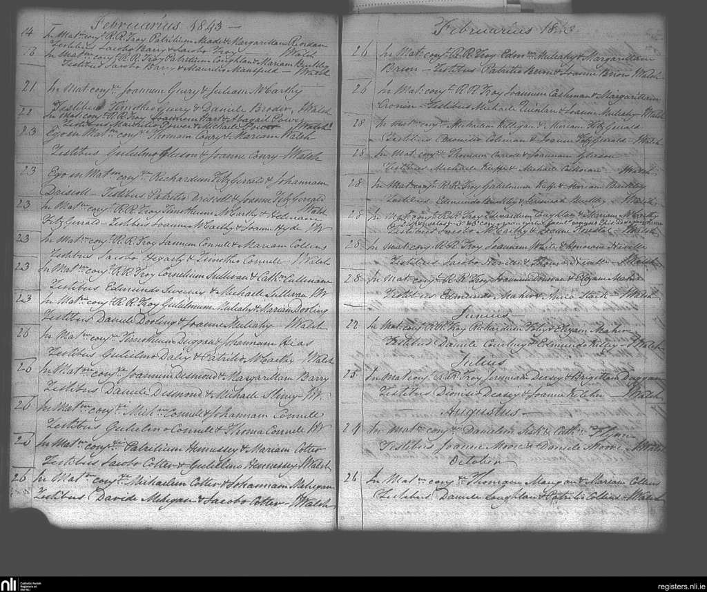 Lisgoold; County of Cork; Diocese of Cloyne. Marriages, Feb. 1843 to Oct. 1843