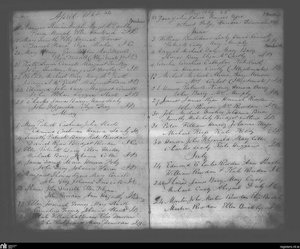 Lisgoold; County of Cork; Diocese of Cloyne. Baptisms, Marriages, Apr. 1864 to July 1864