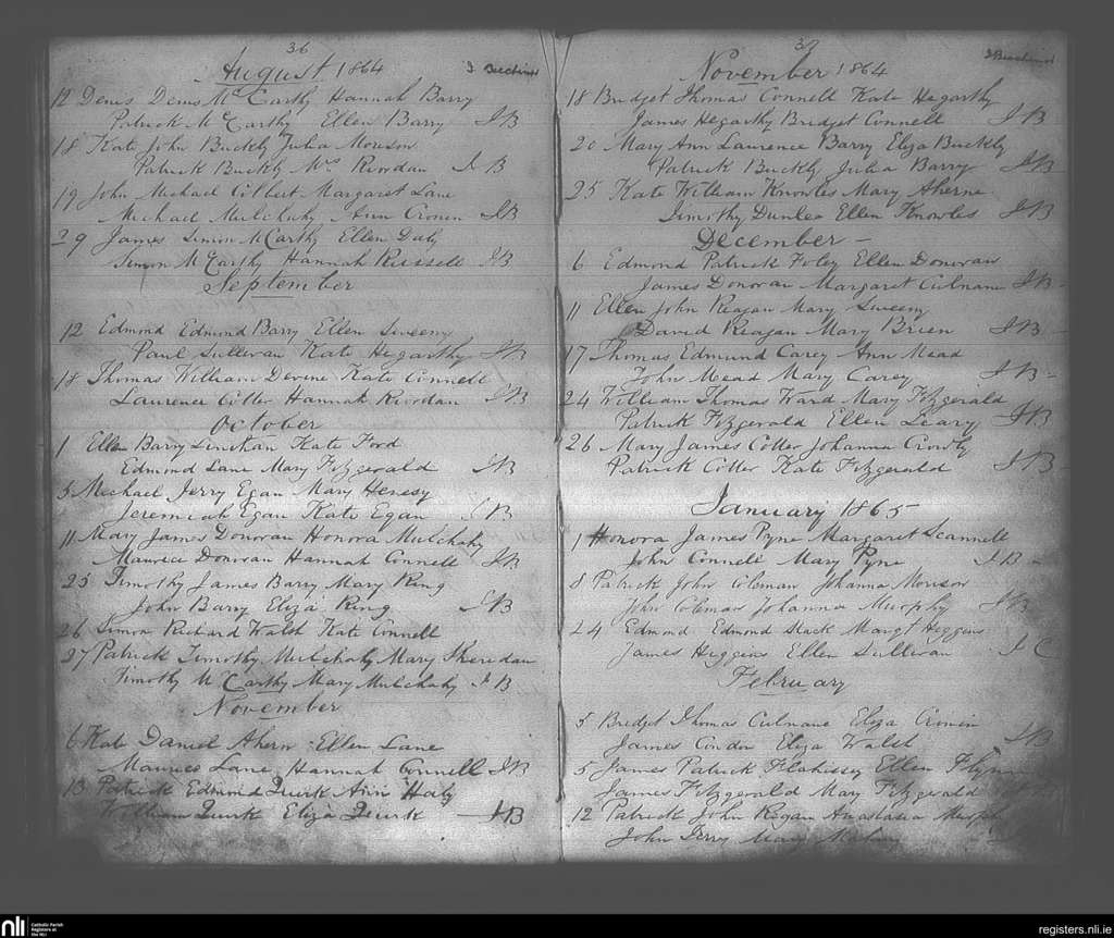 Lisgoold; County of Cork; Diocese of Cloyne. Baptisms, Aug. 1864 to Feb. 1865