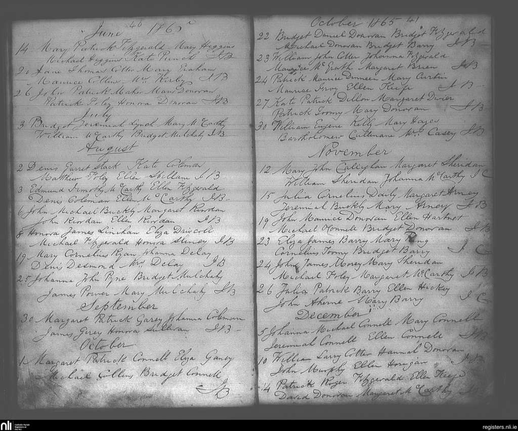 Lisgoold; County of Cork; Diocese of Cloyne. Baptisms, June 1865 to Dec. 1865