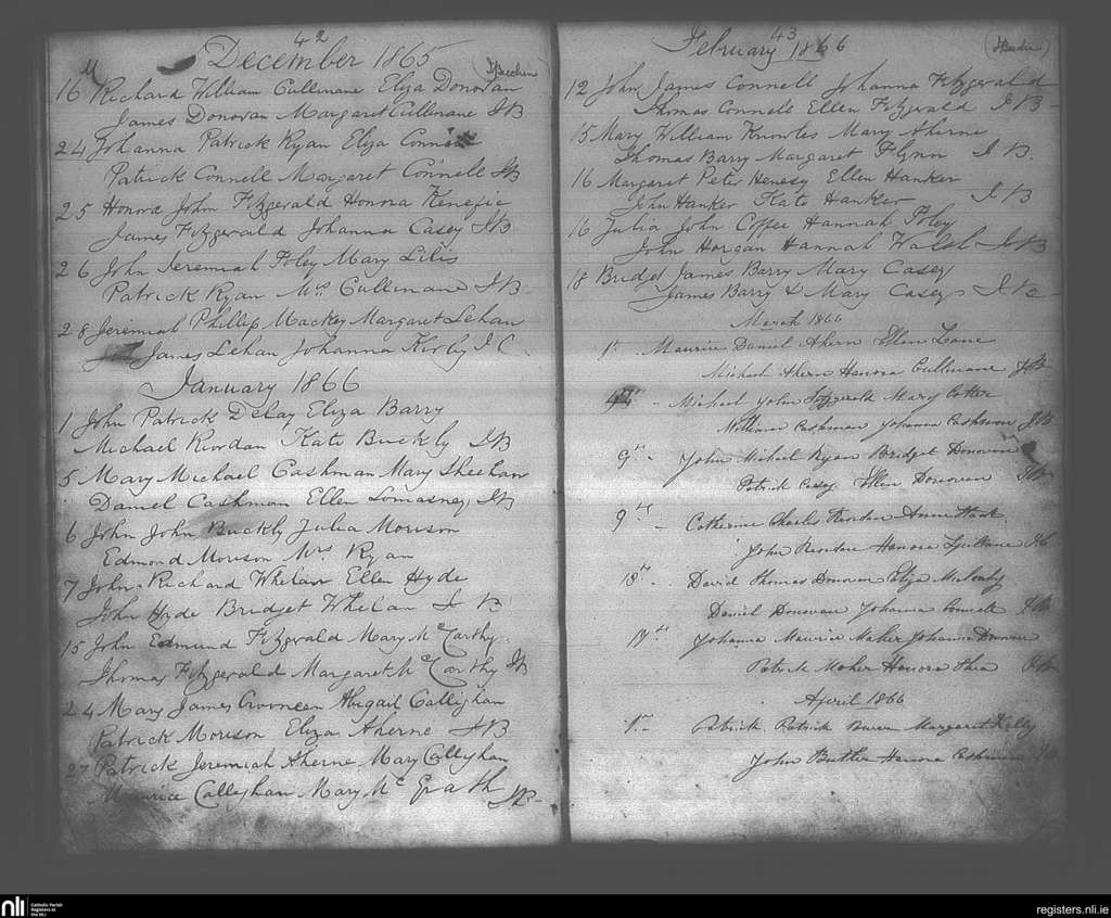 Lisgoold; County of Cork; Diocese of Cloyne. Baptisms, Marriages, Dec. 1865 to Apr. 1866
